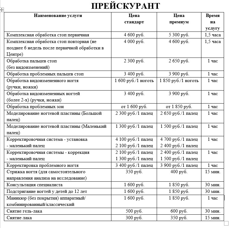 УСЛУГИ ПРАЙС
